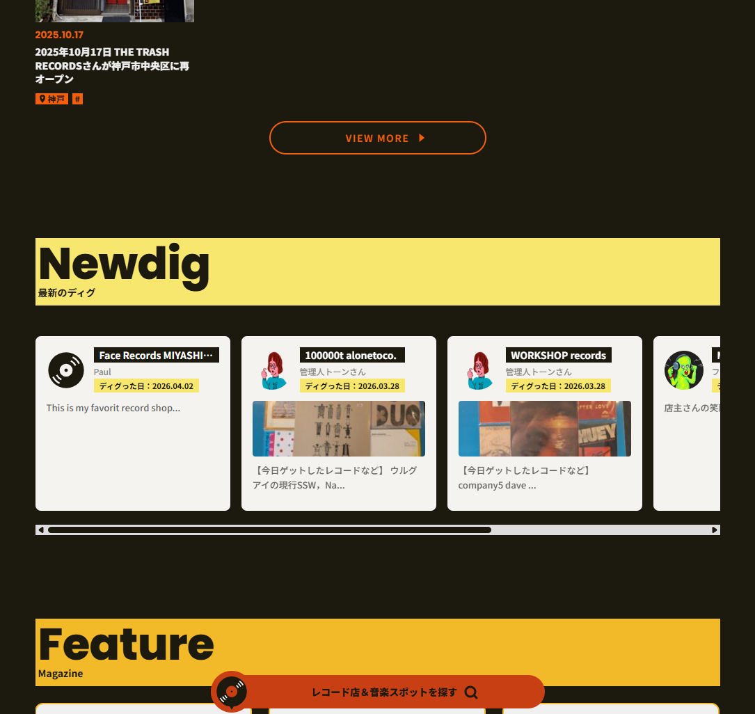全国のレコード店や音楽スポットを少しずつ掲載してきて、いまでは900店舗を超えるスポットを探せるようになりました(2026年4月時点)。