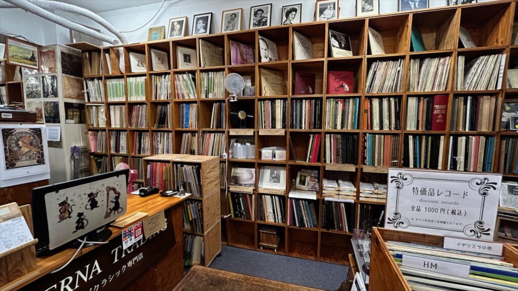 Eterna は東京でも有数のクラシック音楽レコード店です。スタッフとオーナーはとても親切で、親身になって対応してくれます。レコードを試聴するためのターンテーブルとヘッドフォンもあります。また、特定のレコードのセールも毎週開催しています。価格も非常にリーズナブルです。